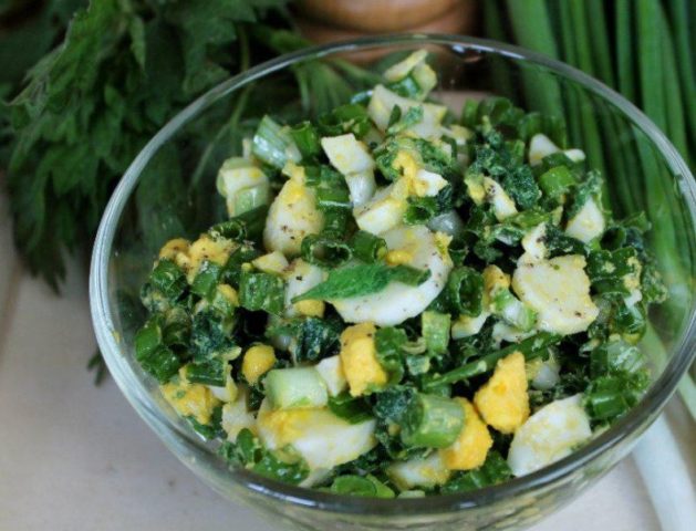 Hay muchas opciones para un plato apetitoso y saludable. Hacer ensalada de ortiga fresca requiere un mínimo de ingredientes. Las verduras funcionan bien con una variedad de verduras, por lo que puede usar casi cualquier alimento disponible.