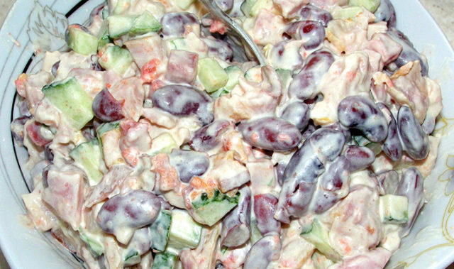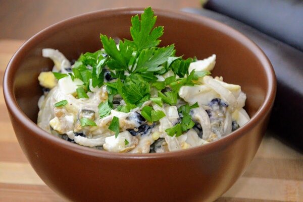 Ensalada delicada y deliciosa diversifica el menú diario. La mayonesa se puede sustituir por yogur griego si lo desea.