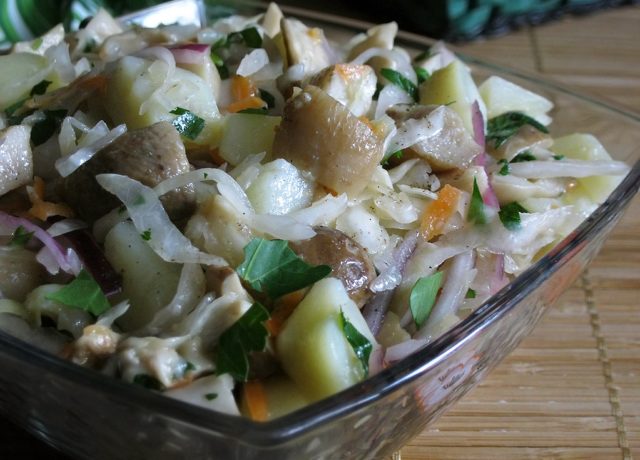 La receta de ensalada con hongos porcini en escabeche es fácil de preparar y no lleva mucho tiempo, por lo que es adecuada incluso para amas de casa ocupadas.