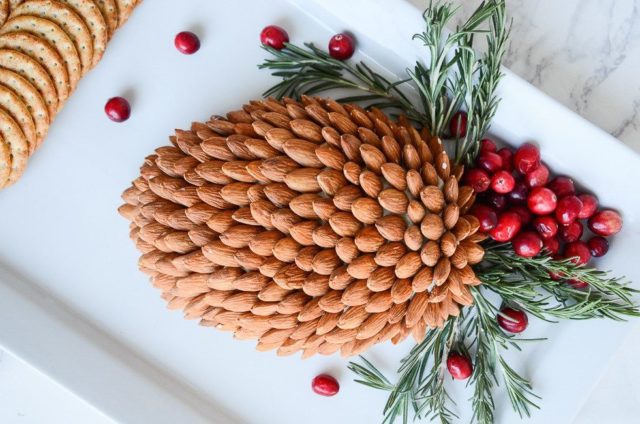 - Cubra los conos por todos lados, extienda las hojuelas de nuez.