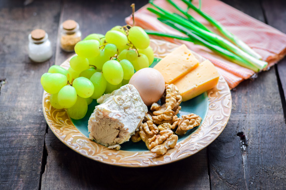- Decora con mitades de uva. Deben colocarse con un corte.