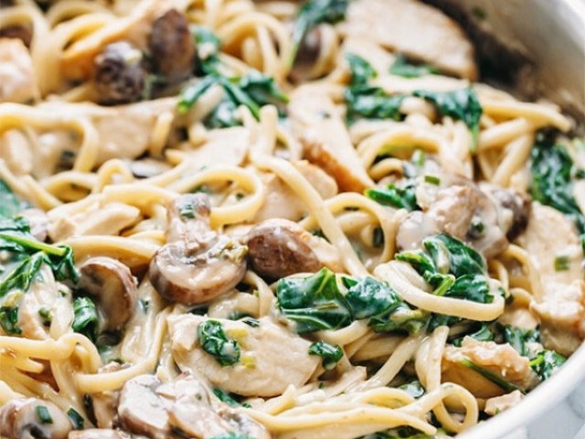 - 6 Pasta con champiñones en salsa cremosa en una sartén