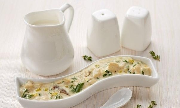 Además, se añaden verduras, frutas o queso al plato caliente para realzar el sabor, así como harina, que ayuda a espesar la salsa. Puede diluirlo hasta obtener la consistencia deseada con leche o caldo, que está precalentado.