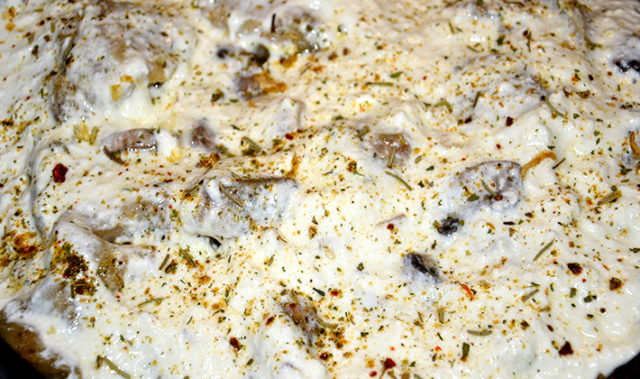 - Vierta la crema agria y cocine a fuego lento durante otros 5 minutos.