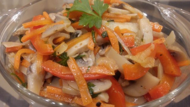 Se puede hacer una ensalada muy sencilla con champiñones después de la cosecha para disfrutar de una deliciosa comida.