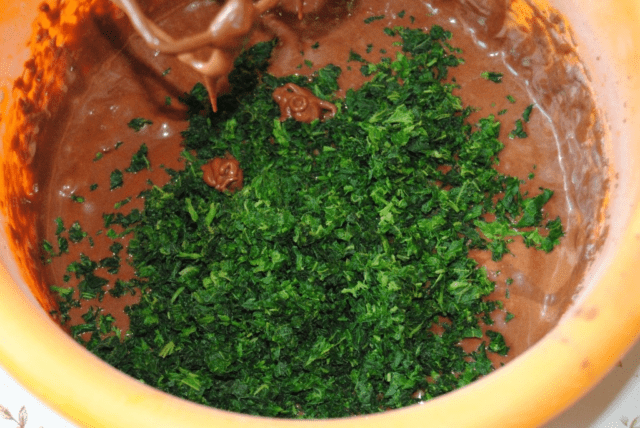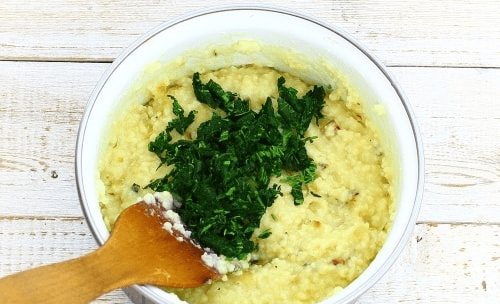 - Agregue la ortiga picada a la masa terminada. Remover.