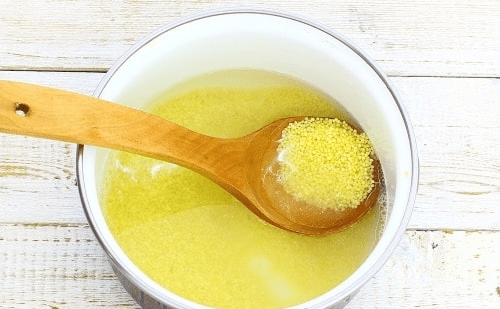 - Primero debes hervir el mijo. Para hacer esto, vierta el caldo en el cereal: está permitido usar vegetales, pollo o carne. Cocine hasta que el agua se haya evaporado por completo.