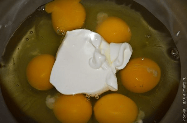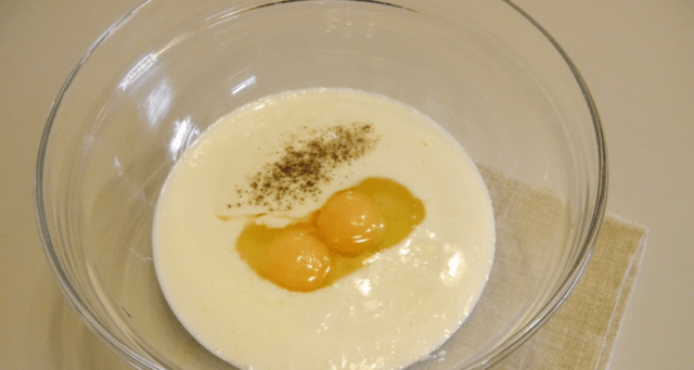 - Romper los huevos de gallina en kéfir y agregar sal y azúcar, pimienta. Revuelva bien.