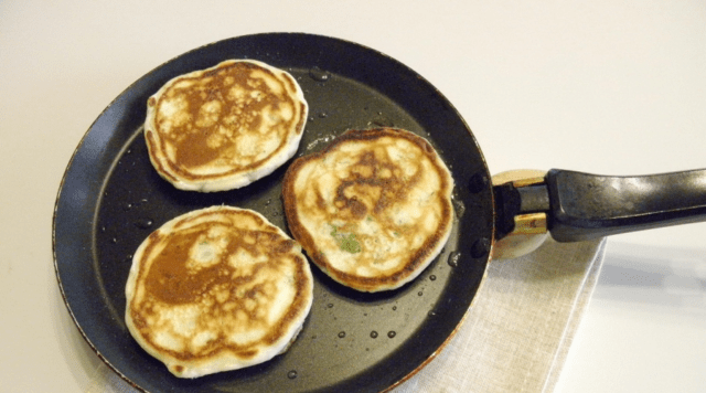 - Freír los panqueques en aceite de girasol hasta que estén dorados.