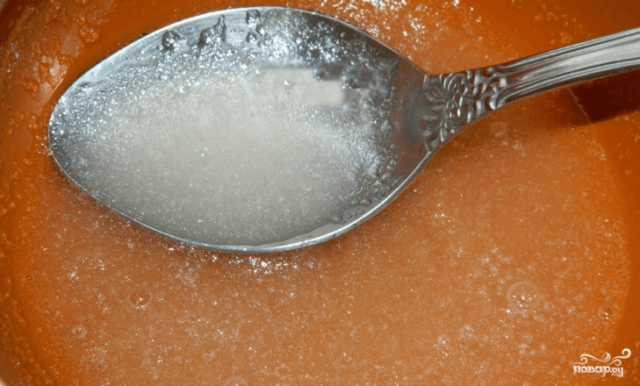 - Revuelva bien la vainillina y el azúcar en agua. Agregue gelatina a la solución dulce, revuelva hasta que los gránulos desaparezcan por completo.