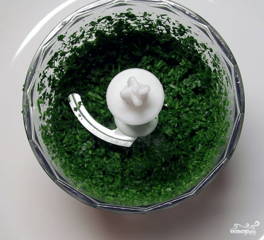 - Coloque la hierba en agua hirviendo durante un par de minutos, enjuague con agua fría, muela. Combine todos los ingredientes, agregue sal y especias.