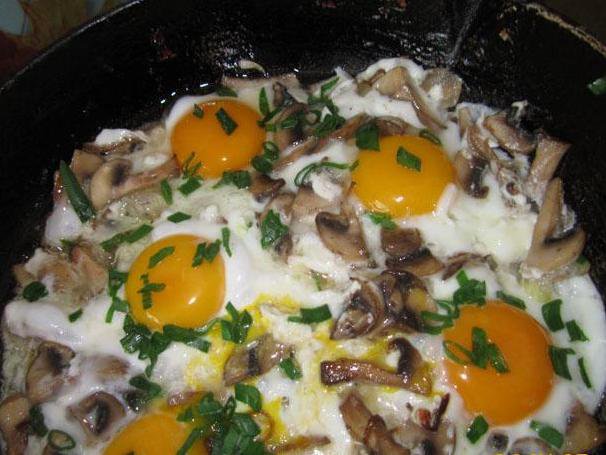 Pocos rechazarían tal plato. Después de todo, los champiñones fritos con cebolla, huevos y hierbas no solo se ven apetitosos, en realidad son muy sabrosos.