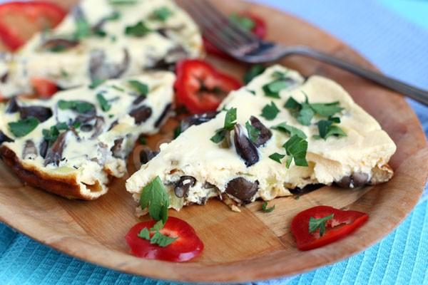 - Prepare una mezcla de crema agria de huevo y vierta champiñones sobre ella.