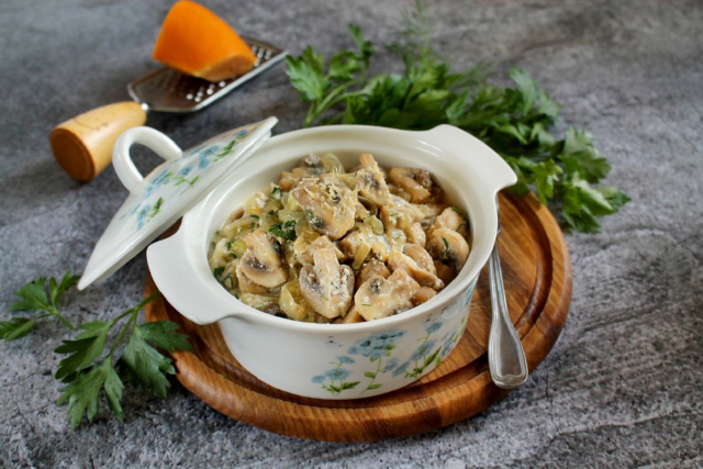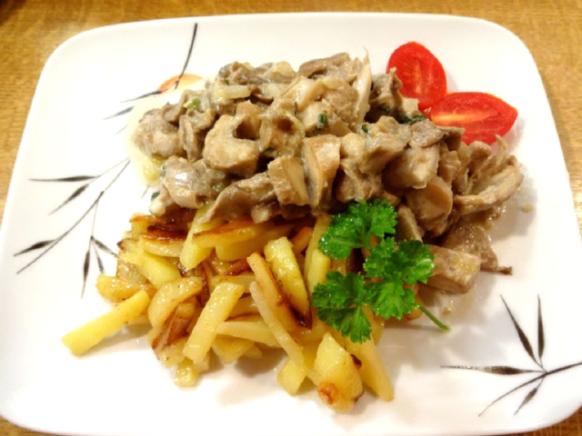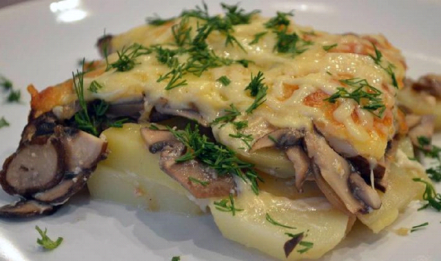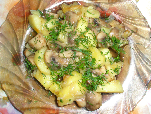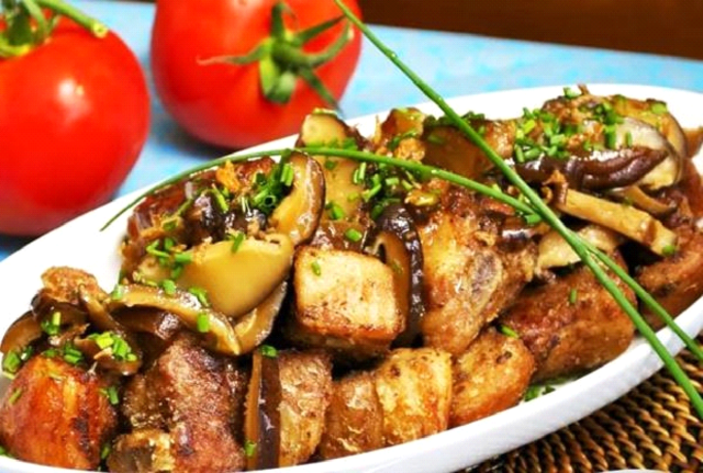 Esta variación de cocinar papas fritas con champiñones es adecuada no solo para todos los días, sino también para una cena familiar festiva.