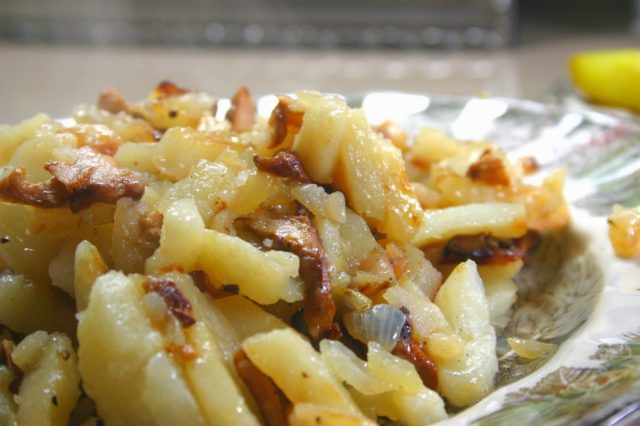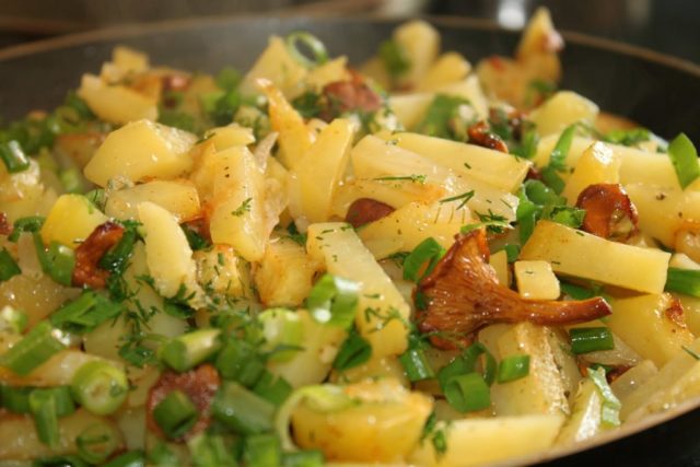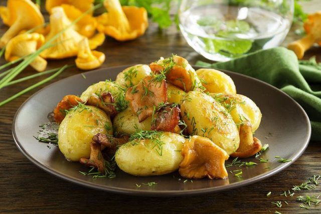 Puede cocinar rebozuelos fritos con patatas utilizando cualquier producto adicional. Estos hongos van muy bien con los productos lácteos.