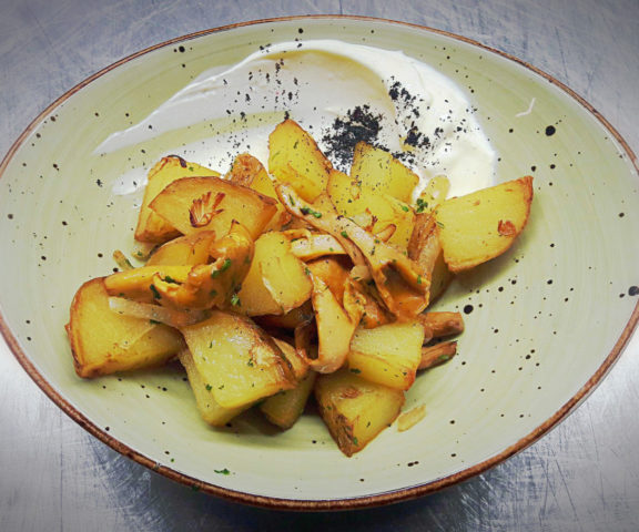 - 3.10 Patatas fritas con rebozuelos y mayonesa