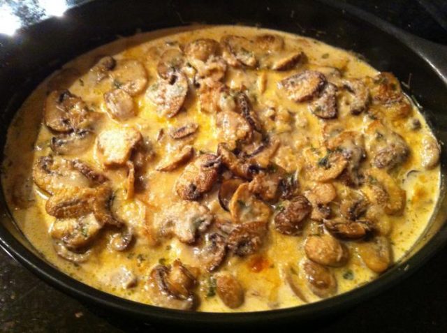 Use esta opción para hacer una deliciosa cazuela con una corteza delicada. Si no hay horno, entonces debe usar una sartén, simplemente mezcle los productos lácteos y vierta sobre los champiñones fritos.