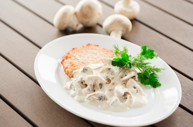 La salsa de champiñones con champiñones frescos, hierbas y crema agria te brindará un deleite inolvidable.