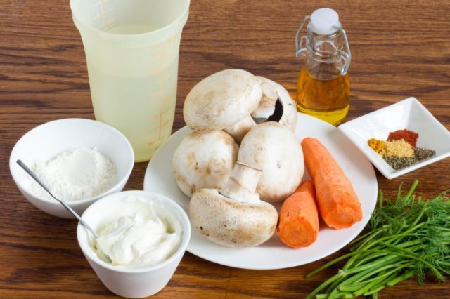 - 11 Cómo cocinar champiñones en crema agria con cebollas y zanahorias.
