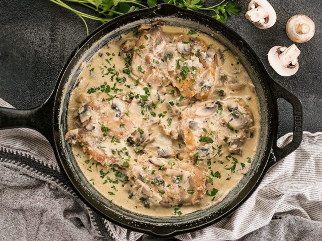 Cerdo con salsa de crema agria de champiñones