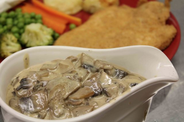 La salsa de champiñones complementa una guarnición simple