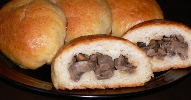 Durante la cocción, agregue una porción de papas, arroz o carne al relleno de champiñones, según los requisitos de la receta. Si el producto semiacabado permanece, se coloca en el refrigerador hasta el próximo uso.