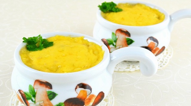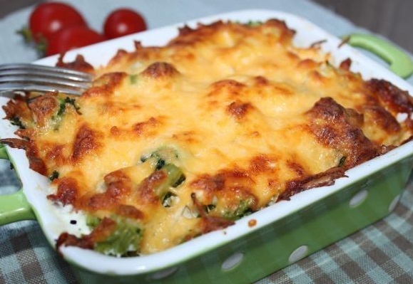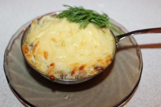 - Espolvorea con queso picado. Pon en el horno. Mantenga durante 27 minutos. Temperatura - 180 ° С.