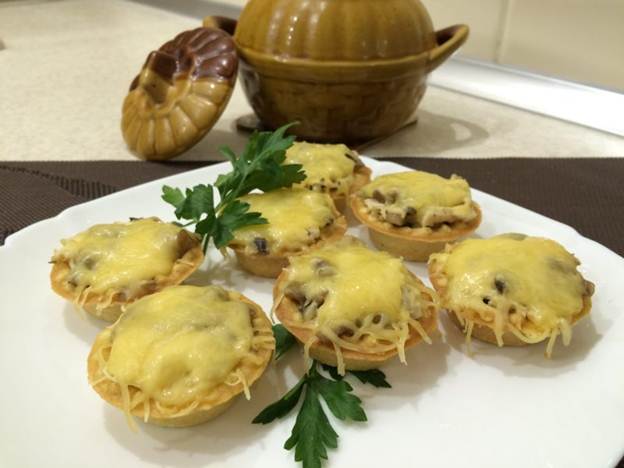 Prepara un plato en una coctelera. Se trata de un cuenco pequeño en porciones con mango largo, en el que se sirve en juliana sobre la mesa. En casa, puede reemplazar este plato con ollas de barro, una fuente para hornear o un gallo. Y si desea impresionar a los invitados, puede preparar un aperitivo fragante en tartaletas.