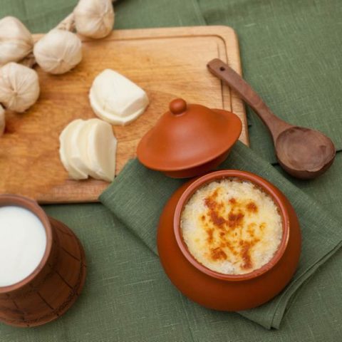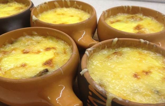 - Enviar a ollas de barro. Espolvoree con queso mozzarella finamente rallado.