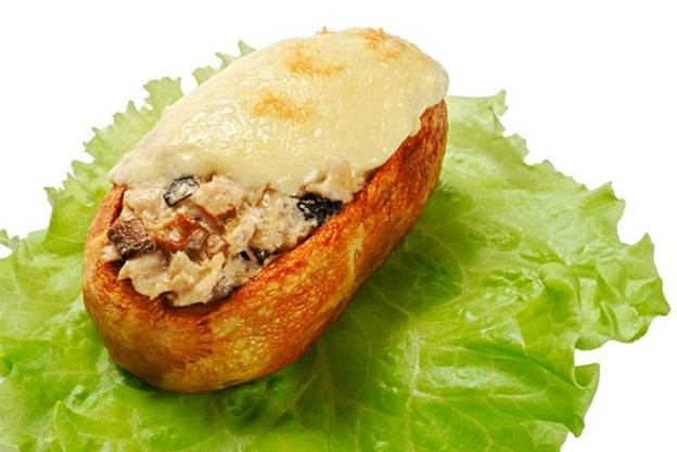 A menudo, la juliana se sirve en la mesa festiva en tartaletas, pero no siempre es posible encontrarlas a la venta. Por lo tanto, puede cocinar un plato sorprendentemente original en papas, que sale más satisfactorio y rico en sabor.