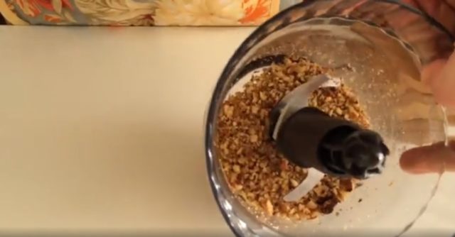 - Las nueces se muelen en un molinillo de café o se machacan en un mortero.