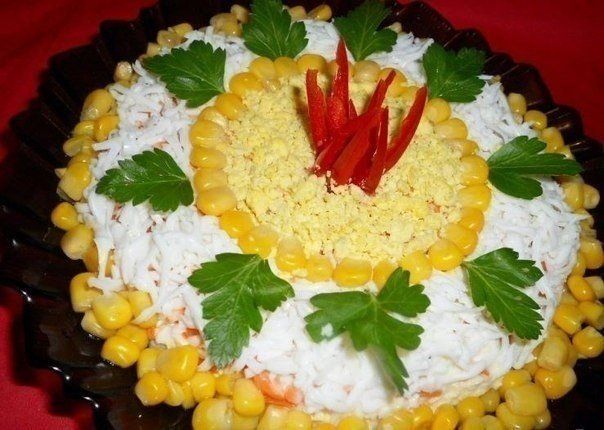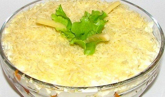 Encima del plato terminado, puede decorar con ramitas de eneldo y plumas de cebolla verde, hongos pequeños, trozos de pimiento dulce.