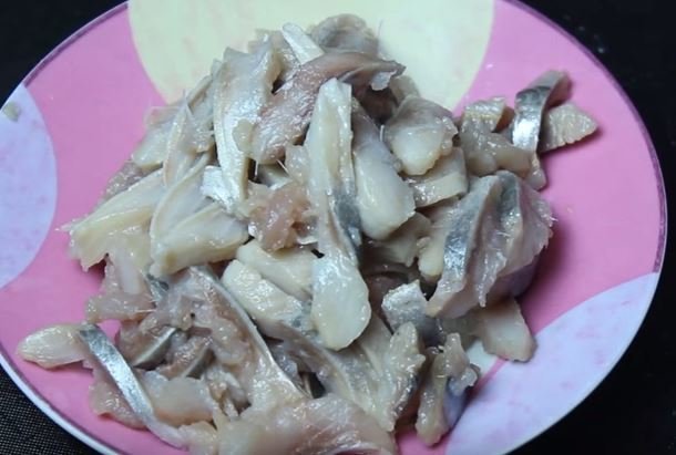 - los filetes se revisan en busca de huesos, incluso los más pequeños se sacan y luego se cortan en cubos;