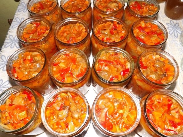 - la ensalada se hierve durante 20-30 minutos, luego se distribuye en frascos preparados previamente y se enrolla.