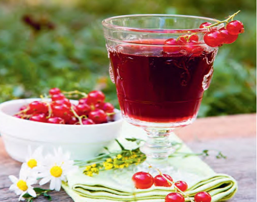 El jugo de esta baya apaga perfectamente la sed, tonifica, restaura la fuerza de las personas debilitadas por la enfermedad y aumenta el apetito. Como fuente de ácido ascórbico y vitamina P, la grosella roja está indicada para los resfriados y como prevención.