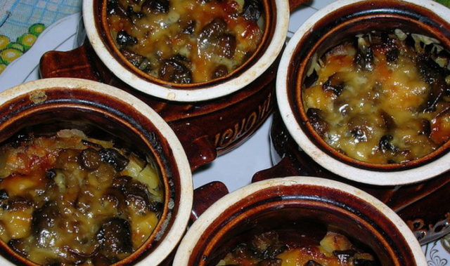 Antes de servir, el plato se deja reposar durante 5-7 minutos, se agrega perejil picado o eneldo a cada plato. Puede cocinar platos en ollas, para esto cada porción se coloca adicionalmente en el horno durante 5-7 minutos antes de servir.