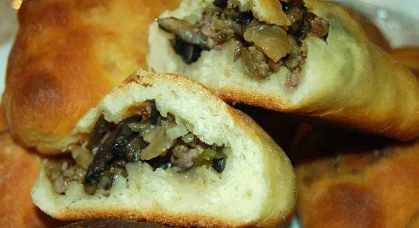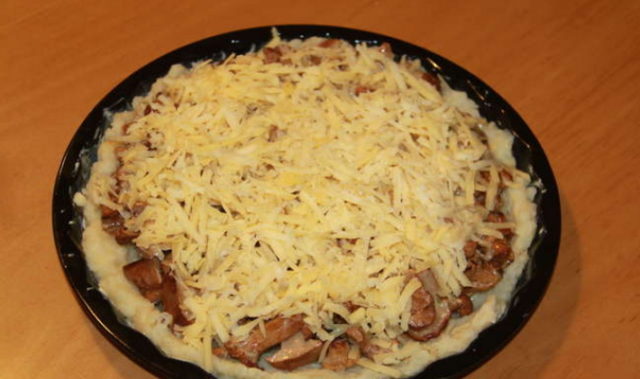 Para preparar este plato, necesitará levadura preparada o hojaldre, champiñones fritos con cebolla. Entonces todo sucederá de la siguiente manera:
