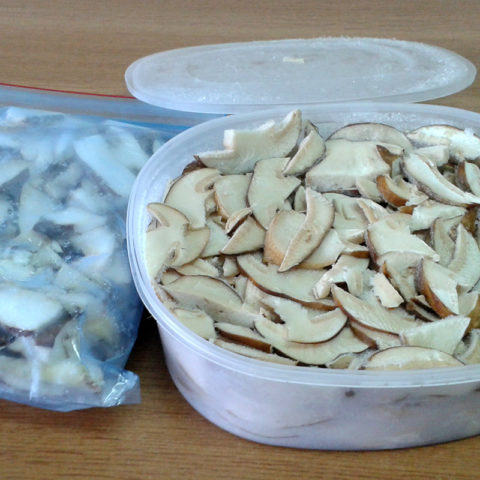 Las muestras enteras (jóvenes y medianas) se pueden hervir para congelar. Es mejor cortar los cuerpos frutales con un tallo grueso y una tapa grande en trozos pequeños antes de hervir, de modo que toda la masa tenga aproximadamente el mismo tamaño. Se incluirán más de estas materias primas en los contenedores para congelar y los paquetes ocuparán menos espacio. Tecnología de congelación de palanquillas cocidas: